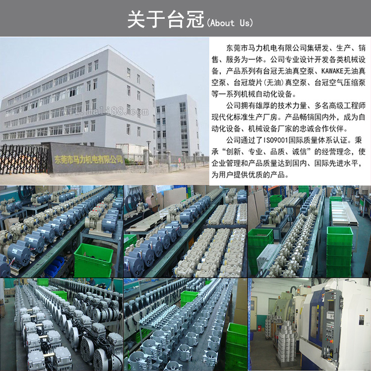 東莞市馬力機電有限公司是一家專注靜音、無油真空泵研發15年生產廠家。公司集研發、生產、銷售、服務為一體。公司擁有團隊技術人員、多名高級工程師、現代化標準生產廠房,先進測試臺,精密設備儀器。產品暢銷國內外,成為自動化設備、機械設備廠家的忠誠合作伙伴。