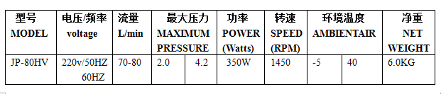 5.本產(chǎn)品為臺冠JP-80HV壓縮泵,嚴禁加油潤滑。