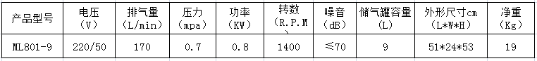 8.本產(chǎn)品為臺冠ML801-9無油空氣壓縮機(jī),嚴(yán)禁加油潤滑。